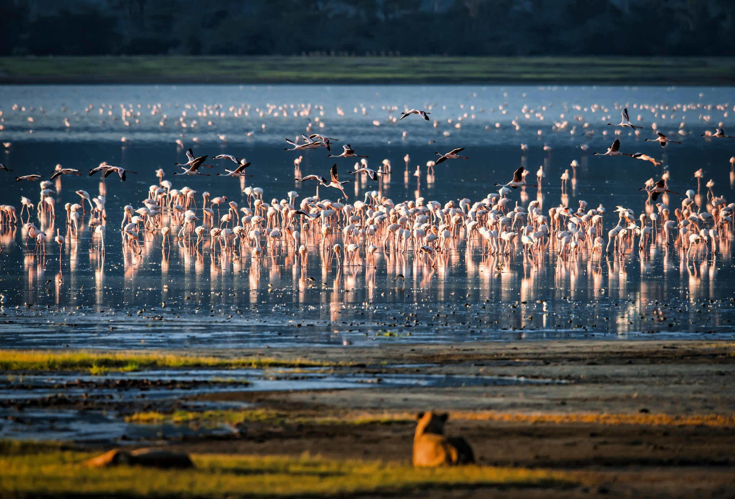 With over 350 bird species recorded, Lake Manyara National Park is a haven for birdwatchers. The alkaline lake attracts vast flocks of pink flamingos, pelicans, herons, storks, and other waders. The diverse habitats, from evergreen forests to woodlands, support species such as crowned eagles, crested guinea fowl, and silvery-cheeked hornbills.